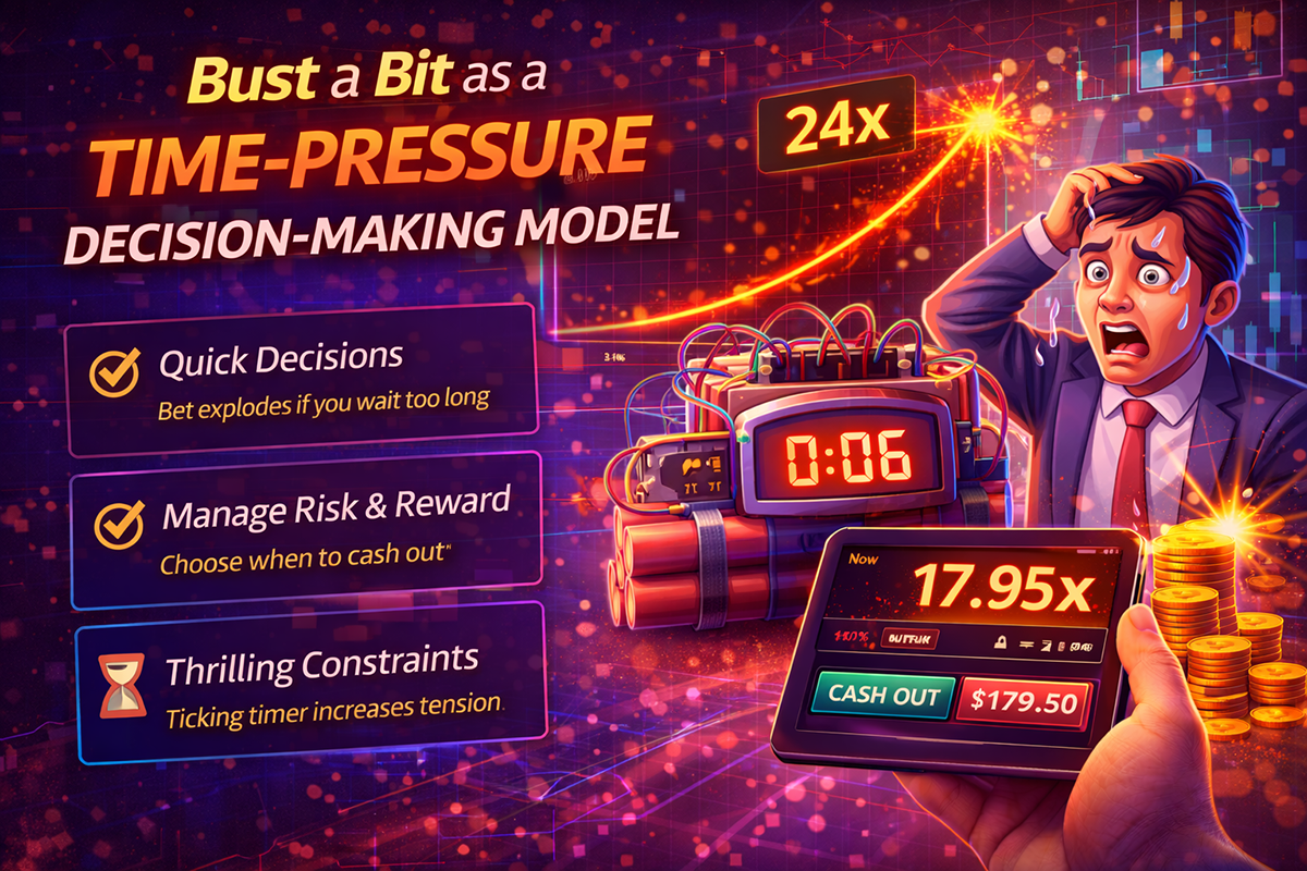The crash game Bust a Bit is a simplified model of choice under uncertainty and tight timing. In each round, the player faces the same dilemma: take the money now or wait for a high multiplier, knowing that a delayed decision threatens to void the bet. During the game, there is no new input data and no opportunity to reconsider one’s behaviour. There is only time and the need to make a choice.